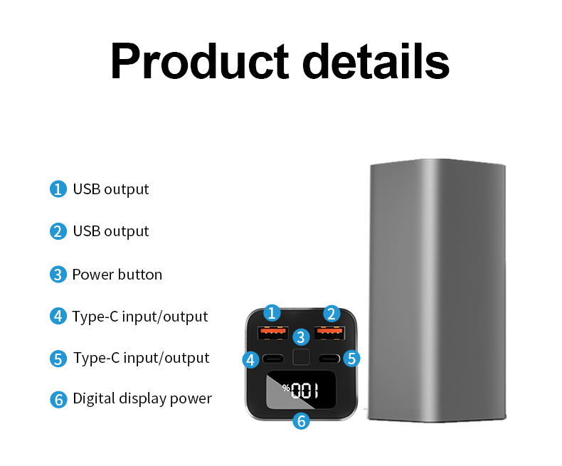 Type-C 1&2input&output: 5V/3A,9V/2A,12V/1.5A,15V/3A